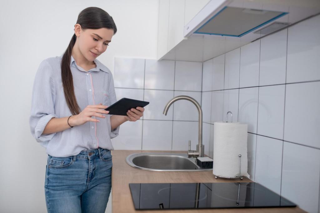 Metallische Oberflächen reflektieren Funkwellen, Glasfronten beeinflussen Wärmesensoren, dicke Wände dämpfen Signale. Wähle Materialien bewusst und platziere Sensoren testweise. Wir zeigen Praxisbeispiele – abonniere für vertiefende Material-Guides und Planungsnotizen.